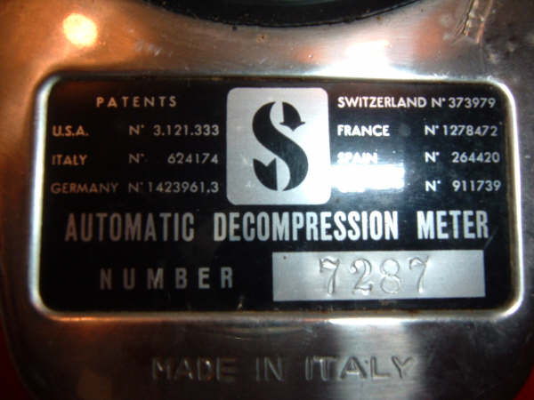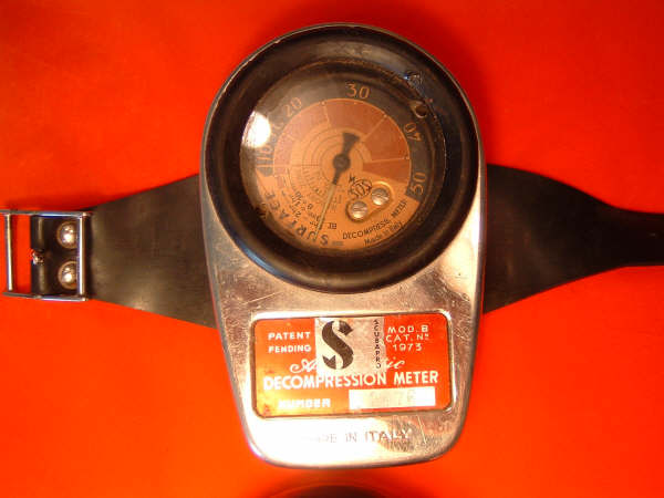 The SOS Decompression Meter (D.C.P.) was introduced in 1959 by the Italian