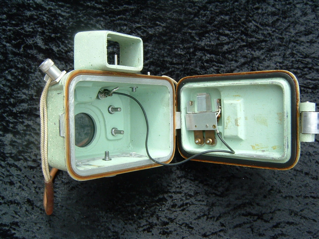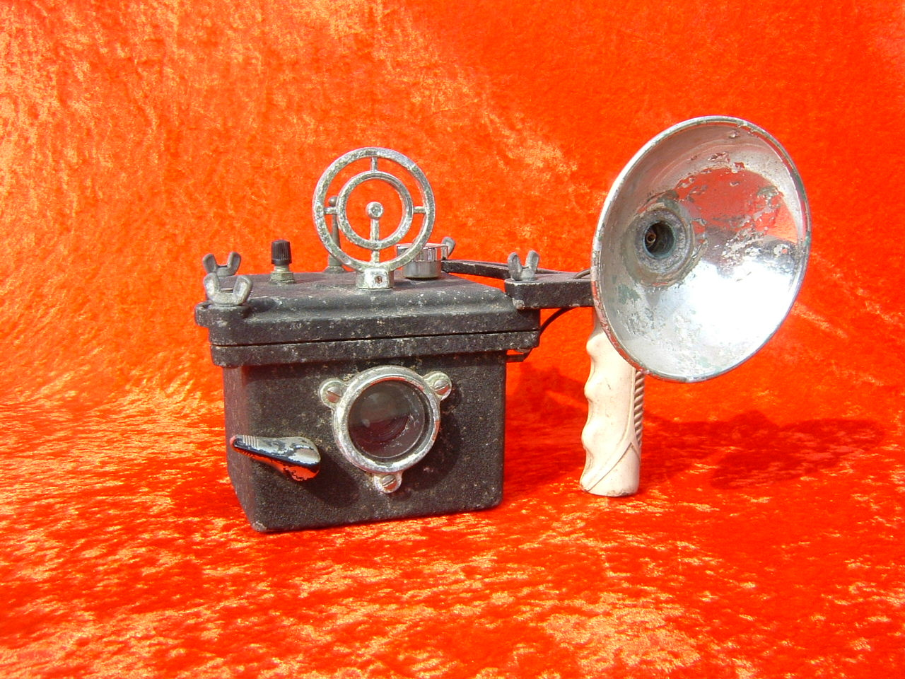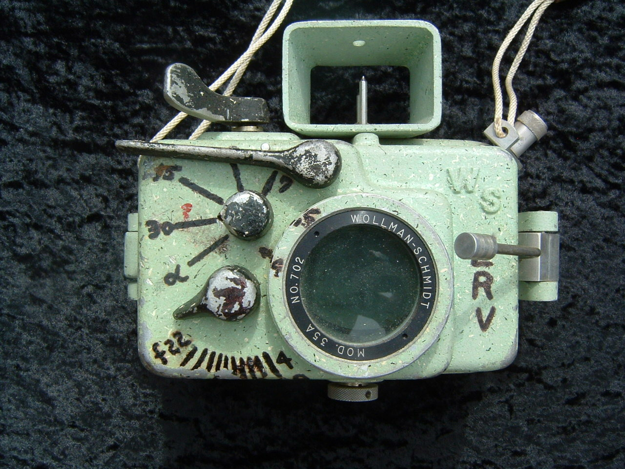 This Wollman Schmidt Mod 35A was available in 1957 for just under 100 dollars. It is made of aluminum and this particular model has a really cool strobe arm.