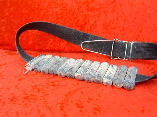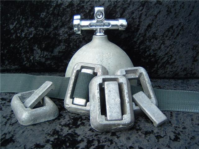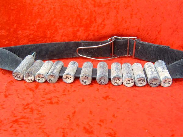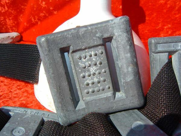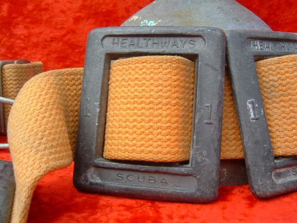 TheScubaMuseum.com was very fortunate to obtain a full belt of 7 1 lb. Voit weights on an original one inch belt. The weights are well used and could very likely tell some great stories of some great dive locations.