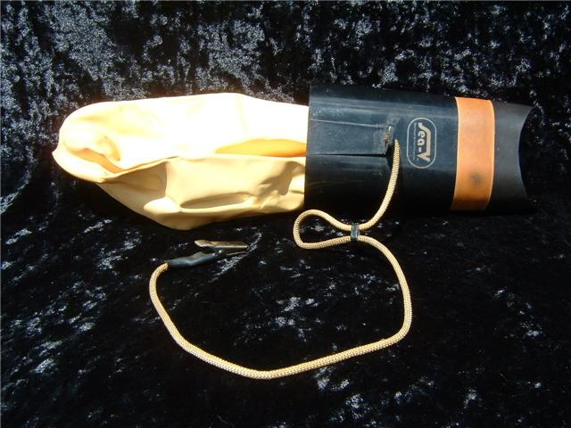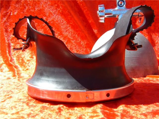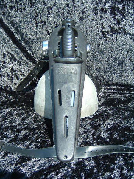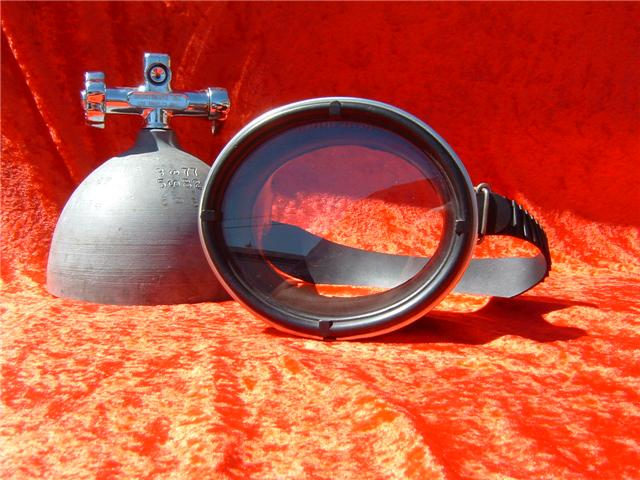 This is a very weird device. The Sea Voice. This item was designed to be placed over the mouth and filled with air from the divers lungs enabling him to talk into the airspace, thus allowing other divers to hear and understand you.