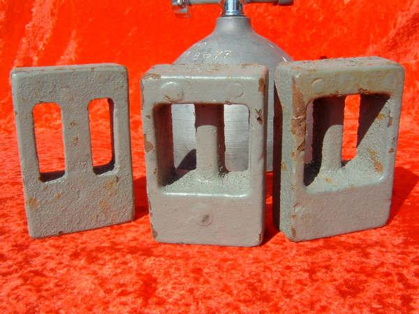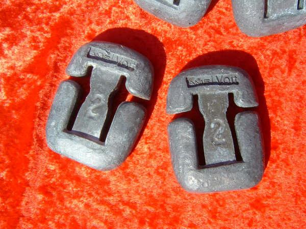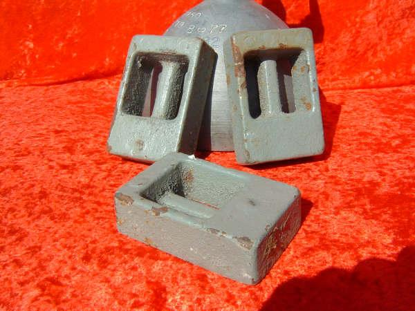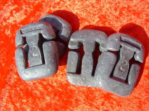 These weights came with my Soviet M1 regulator. They are steel or iron and weigh 1 kilo or a little over 2 pounds each.