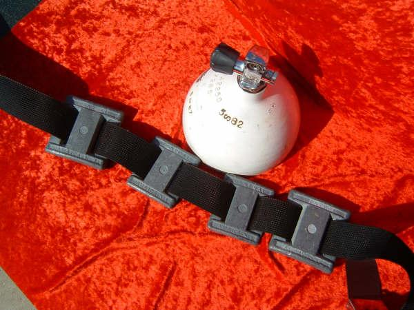 This weight belt was most certainly homemade and surprisingly comfortable. It came to me with the quick release buckle and one of the weights has a utility loop molded into it for clipping off lights, bags, or spear guns.