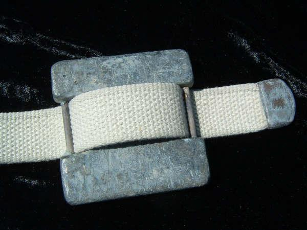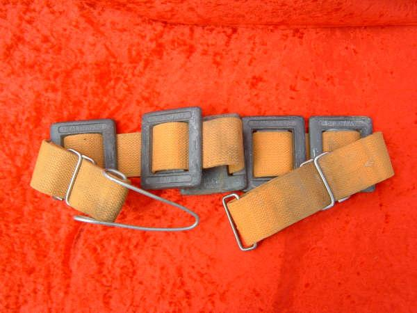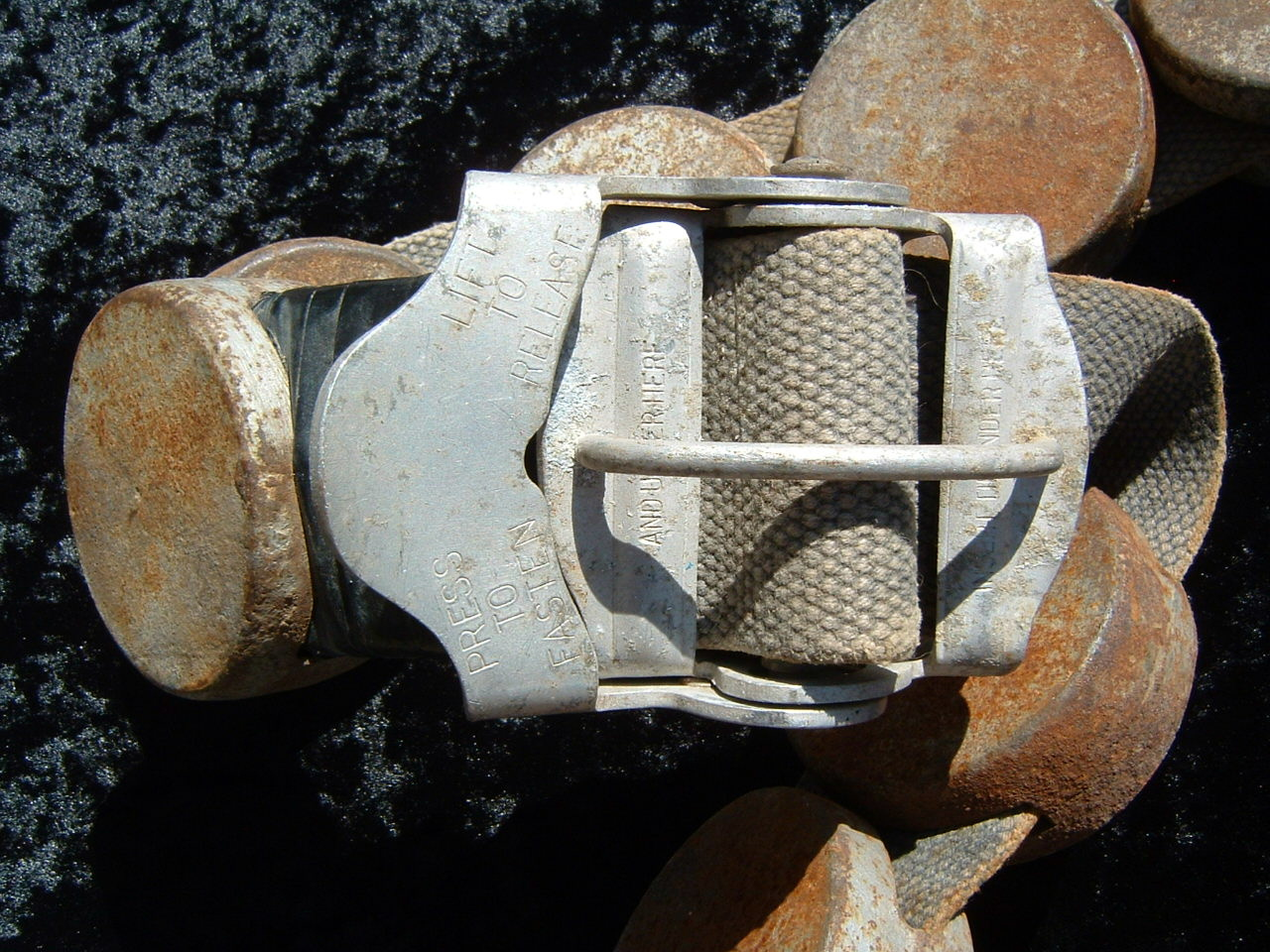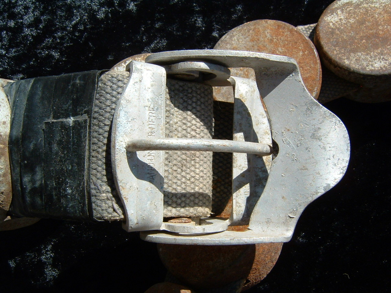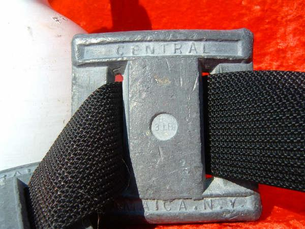 This belt is most likely from the 1950s. The weights are steel and show some signs of rust in fact. The quick release buckle is likely aviation grade.