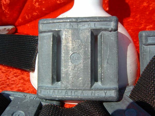 These weights I believe came from Central Skin Divers in Jamaica New York. Many dive shoppes back in the Vintage Scuba days made their own molds and sold them to their customers. Unfortunately this practice has pretty much stopped and many of the examples are gone forever. I find these weights very well designed as they are very flat and have dimples on the back side that keep them from slipping once on the weight belt. It is my understanding that Central Skin Divers is still alive and well in Jamaica.
