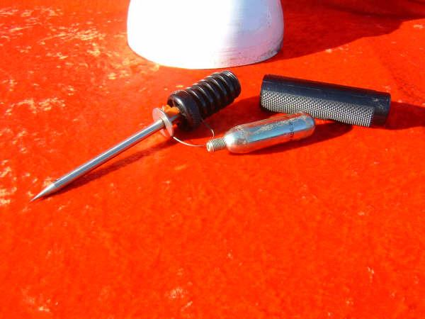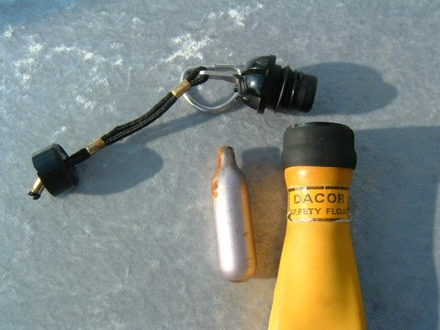 The Dacor Safety float was inflated at depth by the aid of a CO2 cartridge.
