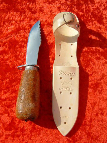 This Rapallo is the only one I have ever seen. It is similar to many other cork handled floating knives offered by US DIVERS and others, but this one is in great shape and seems to have a very nice chrome finish on the blade. I do not know when it was offered for sale by Mares, but it must have been very early in the company’s life.