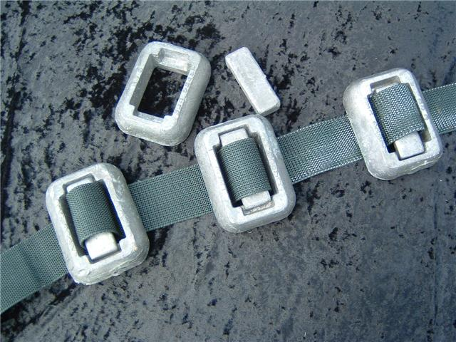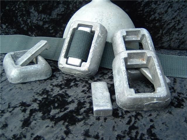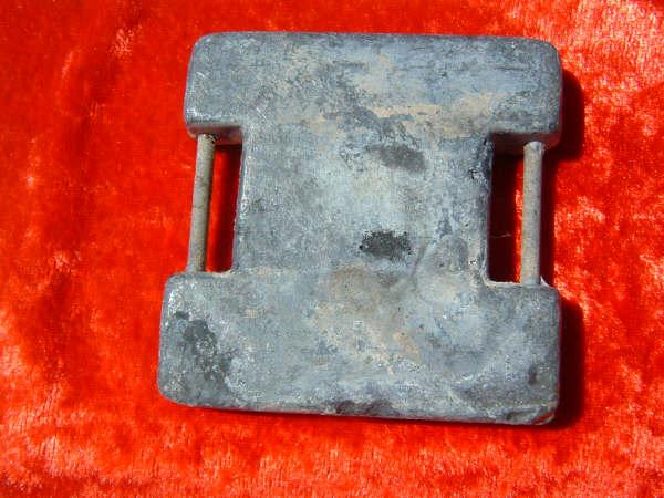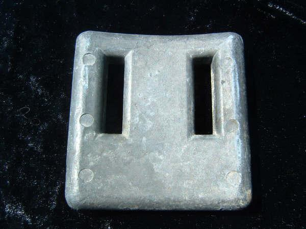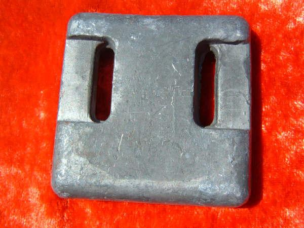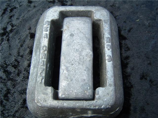 This weight is intended for a one inch belt and the maker is unknown at this time. This weight was donated to The Scuba Museum by and Anonymous benefactor. The Museum is actively searching for more weights like this to complete the display. If you know anything about this item please contact the Museum.