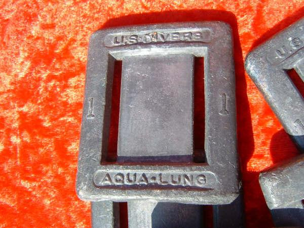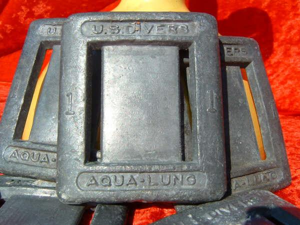 These are a fine example of US Divers 1 pound weights. The markings are in fantastic shape and they are marked “MADE IS USA” on the back.