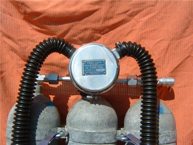 These US DIVERS triple tanks are not any different from the other set the Scuba Museum has, except for the history. These tanks where procured from the legendary Hal Watts. These tanks had been deeper by the 1970s than most modern tech divers would even think about going today. These tanks are prized by the Scuba Museum as one of it’s most exciting displays.