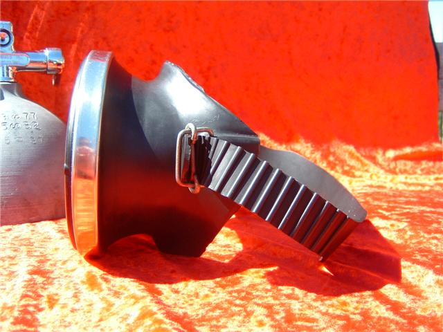 This Soviet made mask is a very nice diver with very soft rubber. Note the Cyrillic writing on the sides