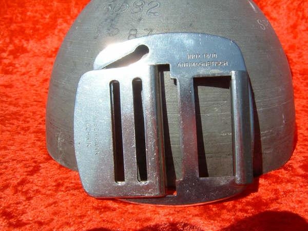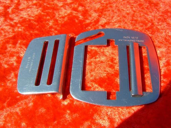 Thanks to Franz Rothbrust in Germany I have some new information on this Antimagnetisch buckle . This is a civilian antimagnetic buckle made by the Froschman Technik company in Germany. The company was owned by Herman Dinges, a professional hardhat diver. Herman sadly died in 2006, but he left a long legacy of fine dive products behind.