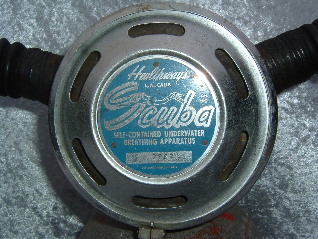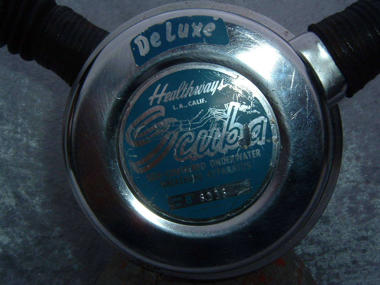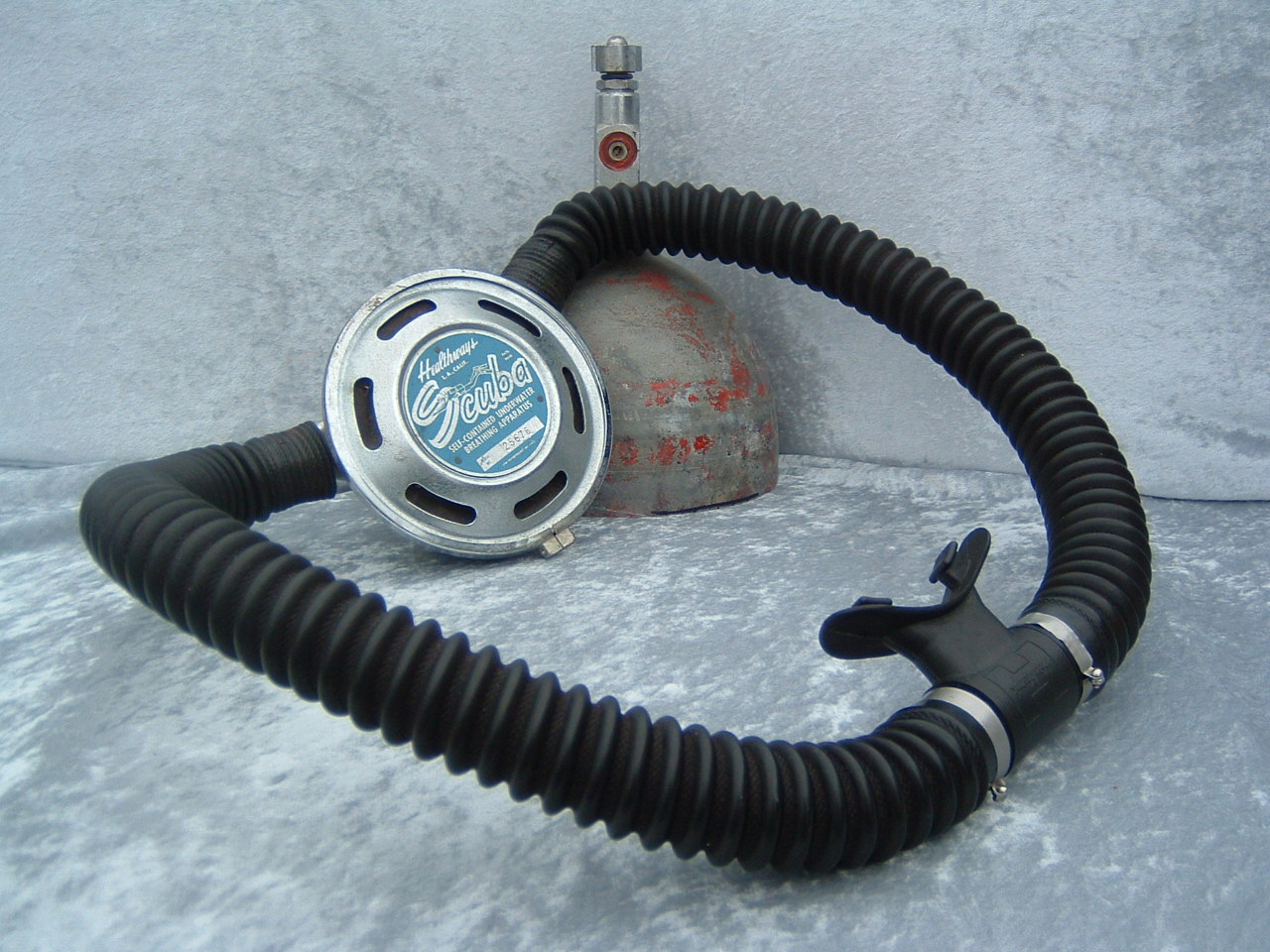 This was Healthways first model I believe.  It like all their models came standard with a clamp ring to hold the cans in place.  This was  a major improvement over the clips offered standard by US Divers.  I believe that Healthways was the company that put the acronym SCUBA on the map.  Prior to Healthways using the term skin diving was more often used.