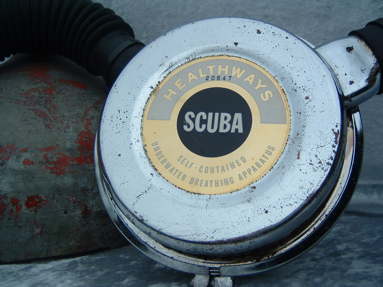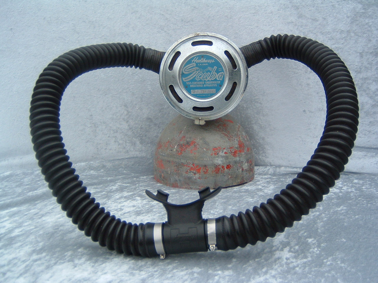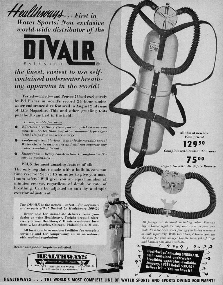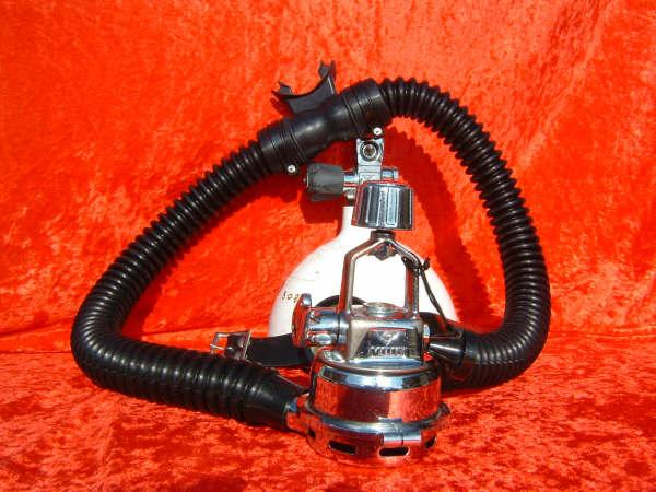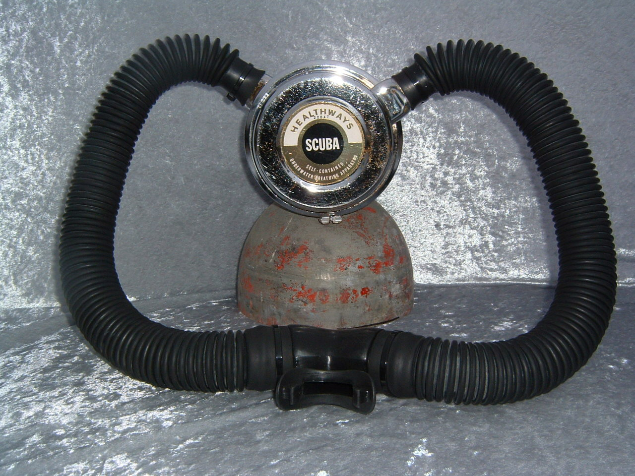 This was Healthways first model I believe.  It like all their models came standard with a clamp ring to hold the cans in place.  This was  a major improvement over the clips offered standard by US Divers.  I believe that Healthways was the company that put the acronym SCUBA on the map.  Prior to Healthways using the term skin diving was more often used.