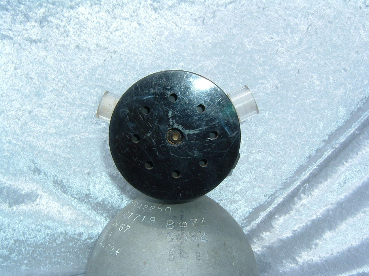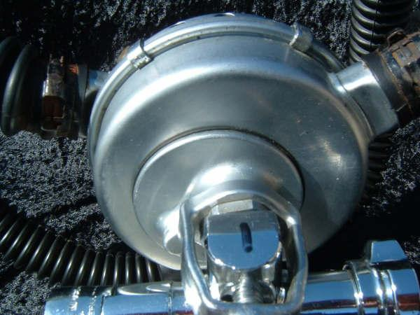 This is one of 2 regulators I have with the Stubbed Hookah port (unfinished port).  This one came to me as you see it.  It is obviously not Non Magnetic but it is a DA Aquamaster.  It is a satin chrome regulator, but has a shiny chrome long yoke installed.  It is in great shape and I think in some ways more rare than a Non Magnetic, but I do not know any manufacturing numbers.