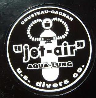 The Jet Air came in at least 3 versions.  One was a Brown Cycolac with raised letters on the top can.  Another was a black one with raised letters painted yellow.  The third is pictured here was also black plastic HIP with a decal label.  Many today have very little decal left and this model was not exception.  A reproduction label was obtained for a very nice price from www.vintagedoublehose.com.  This regulator was also outfitted with a long yoke allowing me to use a banjo fitting with pressure gauge in case I want to know my contents.  I dive this regulator very often and with the yellow silicone reproduction hoses and silicone mouthpiece I get a lot of attention from curious divers.  The Jet Air was basically a Mistral with a cheaply made can.  I imagine that divers only bought it when they could not afford the brass cased Mistral or Polaris.  Today the Jet Air is somewhat collectible as is the much rarer Voit 50 Fathom Blue plastic case.