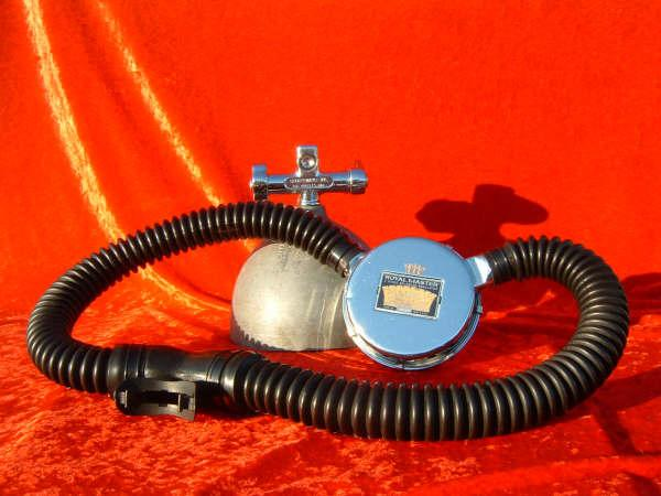 The US Divers Royal Master was only made for about two years (1964 to 1965) and is a must for any vintage scuba diver’s display.  The Royal Master was replaced by the Royal Aquamaster.  This model was delivered to me with a short yoke and a beautiful label.  It is my understanding that all Royal Masters and the first Royal Aquamasters came with short yokes making the use of most banjo fittings impossible.