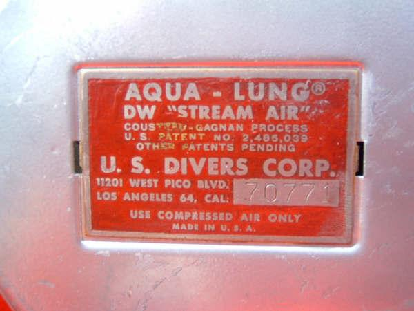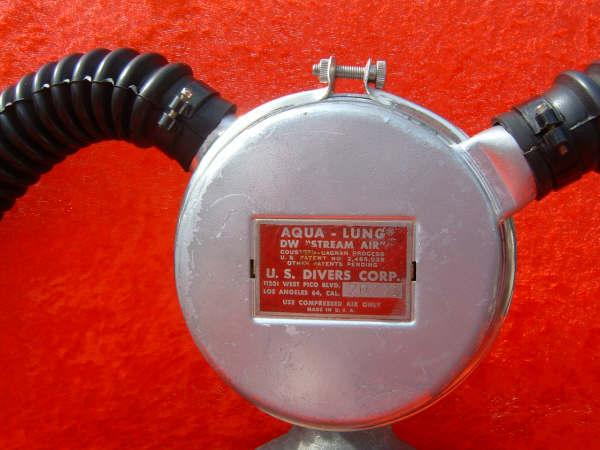 The Stream Air was a 1950s US Divers regulator.  It was one of the first if not the first to have tabs holding on the label and a one piece label side can.  It was a good breather, but was replaced by the Mistral.  The Mistral was essentially the same regulator, but with a different venturi nozzle.  Some Stream Airs were upgraded with the new nozzle and this can be still done today.  These new nozzles are available at VDH Venturi Nozzle for a small price.  This Stream Air has in fact been upgraded by www.Vintagedoublehose.com complete with a brand new venturi nozzle.