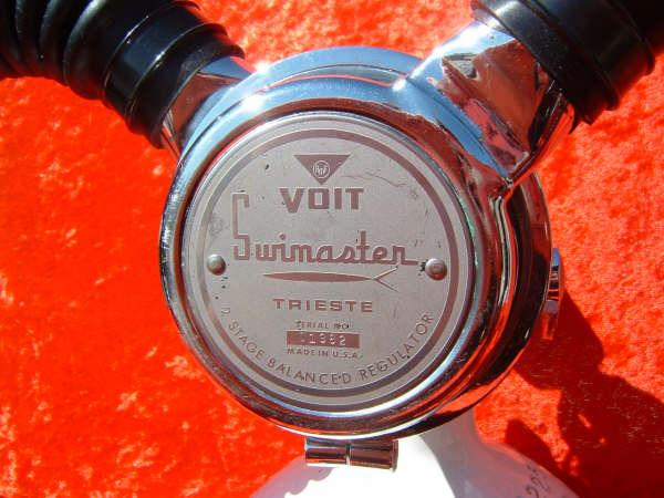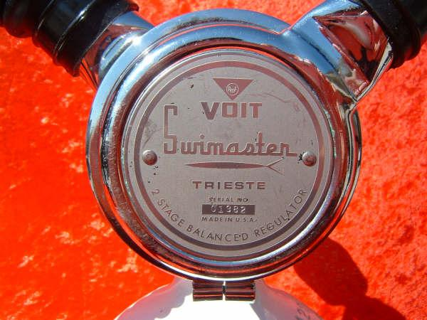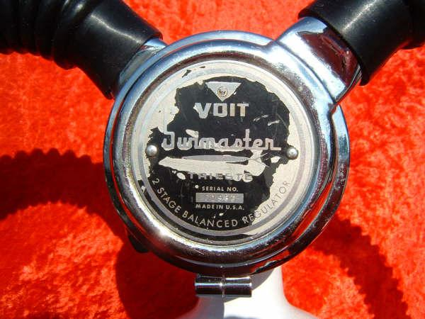 The Trieste was the last of the Voit double hose regulators.  It was probably the only design that Voit made that was not all or in part designed or made by US Divers.  It is a very elegant design, but looses some mechanical advantage by using a small diaphragm.  This regulator also had the advantage of several ports for submersible pressure gauge, octopus, and auto inflator.  This regulator was prized by many and considered by many the best breather that Voit made.