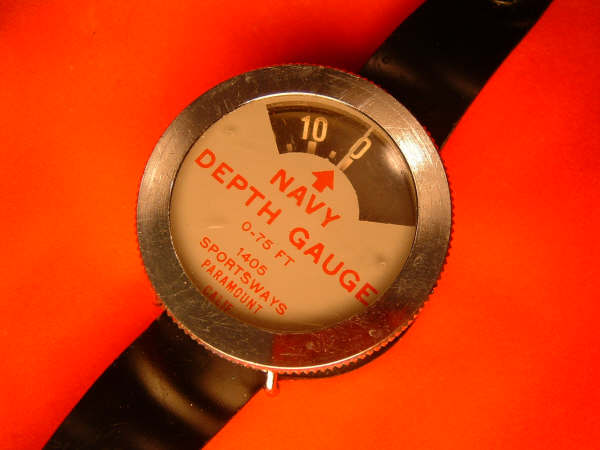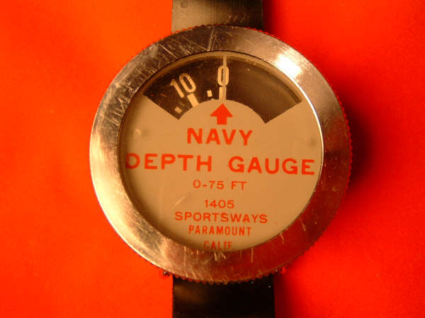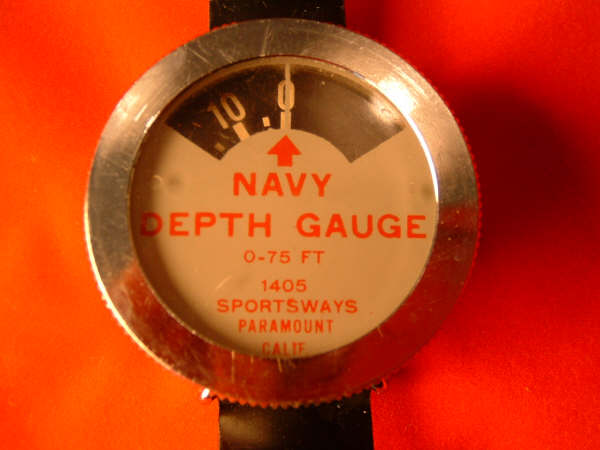 This fine Sportsways NAVY wrist gauge was donated to The Scuba Museum by Bryan Pennington of www.VINTAGEDOUBLEHOSE.com. This gauge was made famous by Mike Nelson in SEAHUNT.