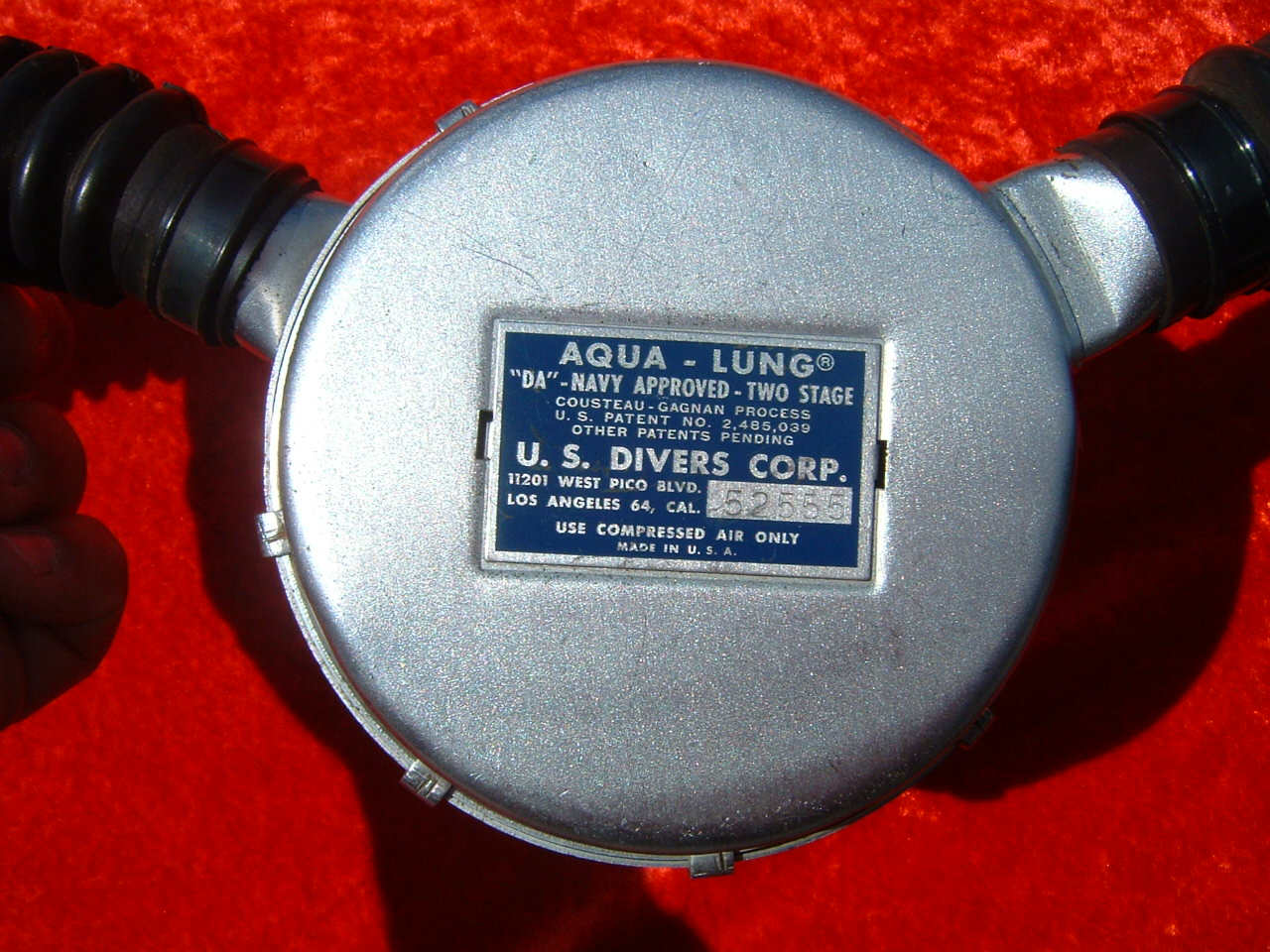 This is a beautiful freshwater DA Navy Approved 2 stage Aqua Lung. The condition is very nice and the regulator actually works when hooked up to a tank! Of course this is being sold as a barn fresh regulator and should be overhauled before dived. This regulator is being offered at a very low price so don't let this one slip through your fingers.