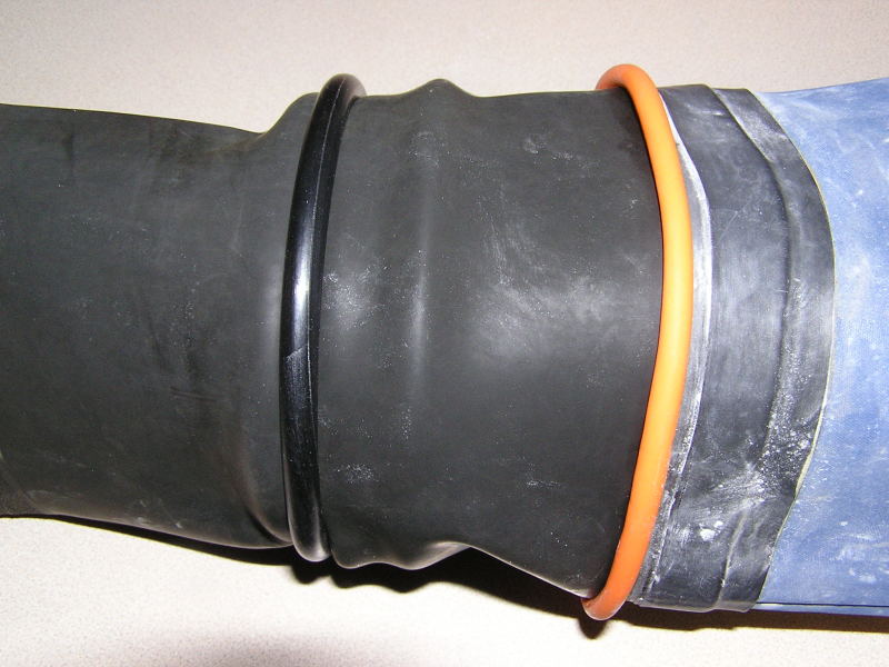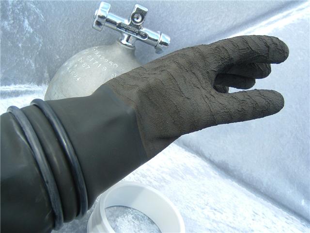 This is a very economical system that allows you to have dry gloves without permanent alteration to your dry suit seals. In this kit you get 2 rings, 4 o rings, and 2 exterior gloves. It is strongly suggested that you run some sand paper over the white rings before installing them on the seal in case a bur has occurred in shipping or handling. The system is double sealing with 2 o rings and in fact will still work with only one o ring in a pinch. You must supply the interior gloves of your choice.