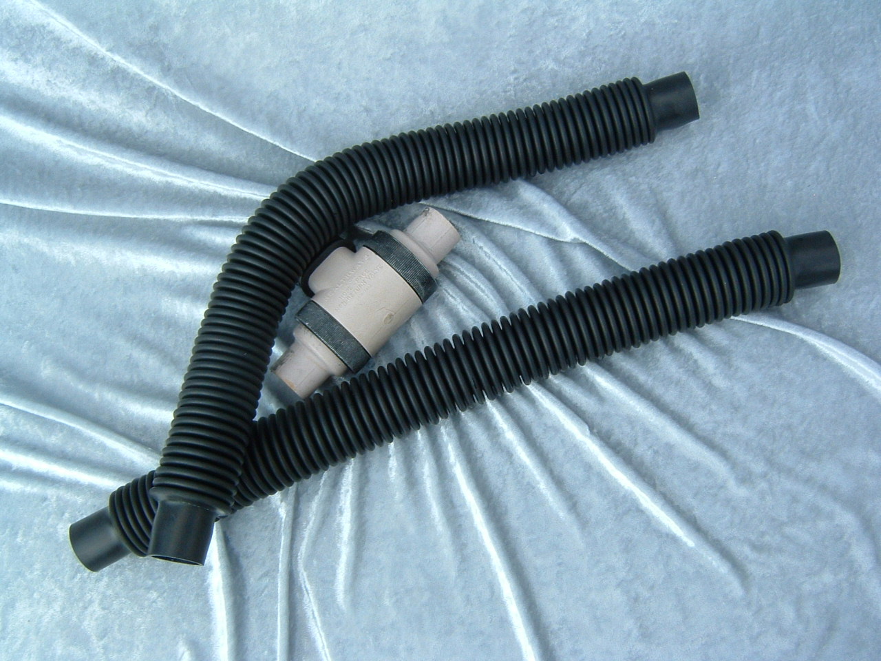 These are EPDM rubber hoses with one inch ends. If you are lucky enough to have a Healthways reg with a Hope Paige mouthpiece, a Submarine products, Waterlung, CG45, Spaco, early Spirotechnique, or any other reg that had a one inch mouthpiece you are finally saved. These hoses are very rugged and super stretchy. The Museum was lucky to get a small batch in and some even marked Spirotechnique on the cuffs. The Spiro marked ones are a first come first serve and are very limited in supply (IF YOU DO NOT SPECIFY THAT YOU WANT SPIROTECHNIQUE MARKED HOSES YOU WILL NOT BE SHIPPED ONES MARKED SPRIOTECHNIQUE). These hoses will typically not work with USD plastic hose clamps. My suggestion is to use heavy duty zip ties as did Spirotechnique or hose clamps like Healthways used.
